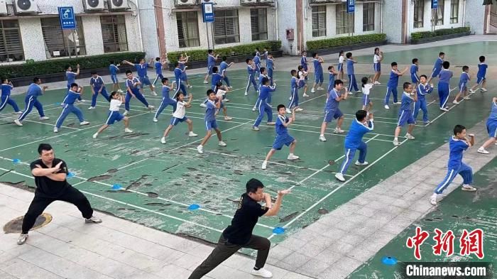 深圳市寶安區(qū)西鄉(xiāng)小學的學生們在練習華林派武術(shù)操 西鄉(xiāng)小學 供圖