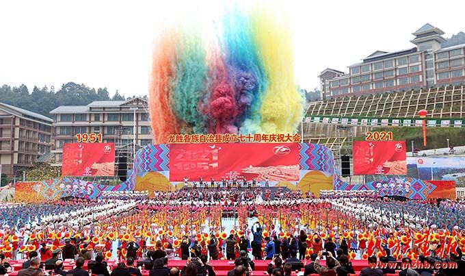 各民族同胞身著盛裝、歡聚一堂,通過民族風(fēng)情展示、龍獅展演、文藝表演、跳民族團(tuán)結(jié)舞等活動歡慶縣慶,展示了龍勝民族團(tuán)結(jié)進(jìn)步事業(yè)全新風(fēng)貌與經(jīng)濟(jì)社會發(fā)展成果,各族人民脫貧致富的幸福感,以及各民族親如一家、共同團(tuán)結(jié)奮斗、共同繁榮發(fā)展的新氣象。