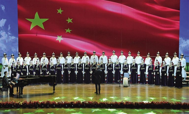 內(nèi)蒙古民族藝術(shù)劇院蒙古族青年無伴奏合唱團演唱《鴻雁》。