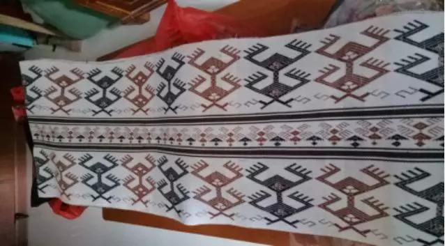 黎族沒(méi)有文字,多數(shù)是通過(guò)圖騰的方式來(lái)記錄歷史,本作品就將黎族生活場(chǎng)景融入織錦中。