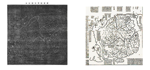 唐代地理學(xué)家賈耽采用裴秀制圖法組織畫工繪制《海內(nèi)華夷圖》,幅面約十平方丈,古今對照,雙色繪畫,注重少數(shù)民族部分,是巨幅唐代中國全圖?!哆M(jìn)海內(nèi)華夷圖及古今郡國縣道四夷述表》云:“唐臣聞地以博厚載物,萬國棋布;海以委輸環(huán)外,百蠻繡錯。中夏則五服九州,殊俗則七戎六狄,普天之下,莫非王臣。” 宋代《華夷圖》被簡化成縱橫各約80厘米,刻于《禹跡圖》背面;圖上不畫方格,有山脈、河流、長城和各州的名稱,其位置大體與實際相近。山脈用人字形表示,河流為單曲線;河流名稱注記在河源處,囊括眾多異族名稱。西安碑林博物館這塊作為印刷用的兩面刻有地圖的石版,是中國現(xiàn)存最早的石版地圖。唐代巨幅彩繪《海內(nèi)華夷圖》和宋代石刻《華夷圖》不僅標(biāo)志著中世紀(jì)中國制圖學(xué)上最高成就,而且是中國多民族國家的象征。