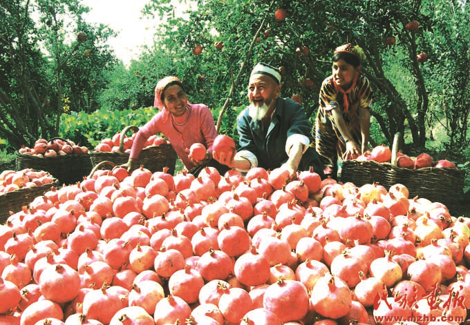 興邊富民行動(dòng)是1999年中央民族工作會(huì)議部署的一項(xiàng)重要的邊境建設(shè)工程,旨在“富民、興邊、強(qiáng)國、睦鄰”。興邊富民行動(dòng)為新疆的發(fā)展帶來了實(shí)惠,2006年,看著豐收的石榴,維吾爾族農(nóng)民樂開了花?!睹褡瀹媹?bào)》2007年7期