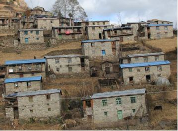 由于夏爾巴人處在氣候溫和、雨量較多的森林地區(qū),這些地方盛產(chǎn)木材,所以木板房是夏爾巴人所居住的房屋的最具代表性的屋式。夏爾巴人往往以木板代替石墻、土墻來建造干欄式構造的全木房屋,即在房屋下面架空,使空氣流通,減少潮濕。墻壁比較薄,窗戶多,建筑風格輕盈疏透。另外還有部分地居式住房以及多板屋式建筑形式。