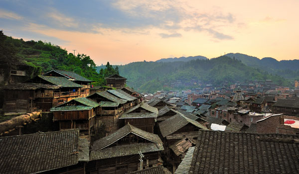 苗族人們崇拜杉樹,在侗族村民心中杉樹占有非比尋常的地位。他們認為,杉樹被砍伐后還能發(fā)出若干嫩芽,繼續(xù)生長發(fā)育,象征著生生不息。鼓樓以杉木建成,造型酷似古杉;花橋同樣用杉木架設,所不同的是前者立著,后者躺著,形成“鼓樓矗立、花橋橫臥”的格局。許多花橋的長廊上都建有涼亭,遠遠望去,一豎一橫,就像立著和躺著的大杉樹。