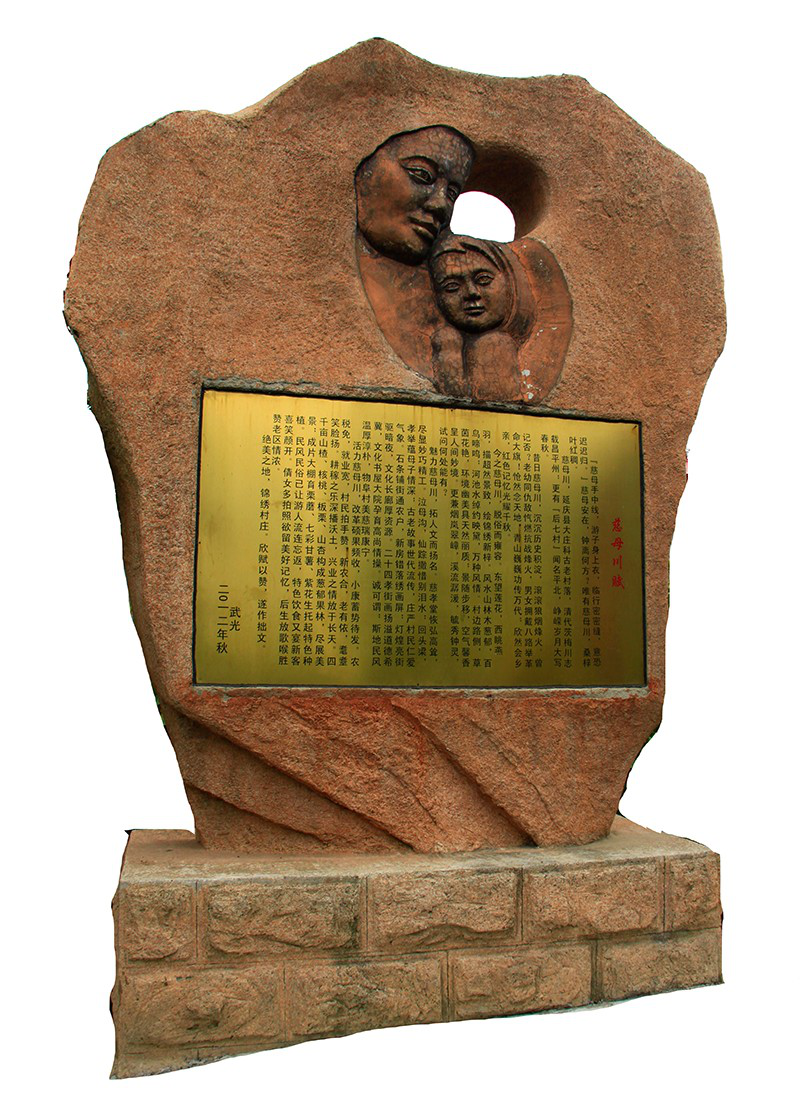 從花藤環(huán)繞的村門進入村子,一座巨石浮雕映入眼簾,上刻慈母孝子,下刻慈母川賦。沿新修的主干道前行,左側(cè)民居古樸,錯落有致,庭院優(yōu)雅,賞心悅目;右側(cè)河水清澈,錦鯉暢游,小橋流水,山影斜疏。新建的村民文化廣場,與對面的滿族風(fēng)情展示墻、健身廣場隔路相望。路邊高大的垂楊柳上懸掛著長長的秋千,悠閑的老人正坐在上面曬太陽。