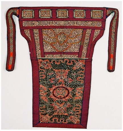 正因馬尾繡的工藝獨(dú)特,蘊(yùn)含著豐富的文化內(nèi)涵,2006年水族馬尾繡入選第一批國家級非物質(zhì)文化遺產(chǎn)名錄。而馬尾繡背兒帶更是將水族馬尾繡的藝術(shù)價(jià)值體現(xiàn)得淋漓盡致。民族文化宮博物館所藏的這件馬尾繡背兒帶,刺繡精美,展現(xiàn)了水族婦女嫻熟的刺繡技藝,是研究水族民俗、民風(fēng)、圖騰崇拜等民族文化的珍貴藝術(shù)資料。