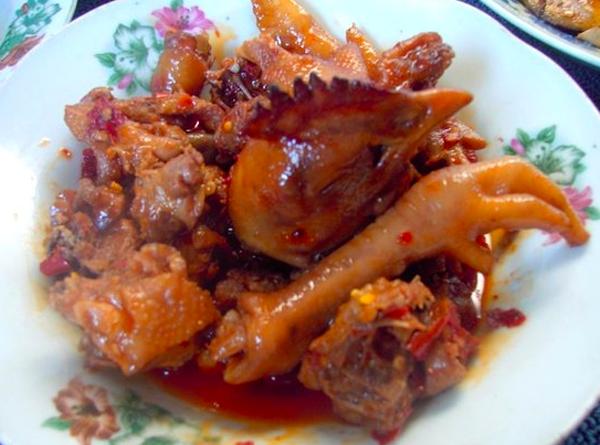 “布依雞八塊”是布依族人的一道傳統(tǒng)的民族風(fēng)味菜?!安家离u八塊”也是布依族辦紅白喜事或平常用來招待客人的傳統(tǒng)菜。
