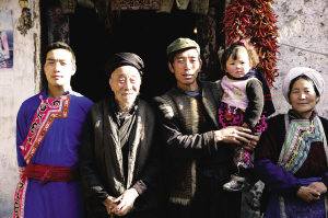 地震前蘿卜寨村民張文泉一家四世同堂,如今照片中98歲的張福連老人(左二)已在地震中遇難