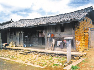 梁河縣九保鄉(xiāng)的阿昌族民居也為三合院,正房的堂屋大都是敞開式,裝飾簡(jiǎn)單,左右?guī)烤o湊,院落很小。兩側(cè)廂房樓下,一邊是廚房,一邊是豬圈、牛欄;樓上,一邊是未婚子女的臥室,一邊存放糧食、雜物。