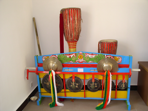 流傳于潞西縣三臺(tái)山德昂族的主要聚居區(qū)。鼓身長(zhǎng)約三尺,頭寬尾窄,兩頭都蒙有鼓皮。傳說(shuō)德昂族在大遷徒中,“饒靜”部落是第二批上路的,為了趕上先行的“饒實(shí)”部落,鼓手不慎跌了一跤,將鼓砸成兩節(jié)。為了使鼓繼續(xù)發(fā)揮聯(lián)絡(luò)、娛樂(lè)和鼓舞人心的作用,他用石頭將切口磨平,又蒙上了一張皮。因此,兩面都能發(fā)出與原先的長(zhǎng)鼓完全不同的聲音。短鼓舞通常配合象腳鼓舞同時(shí)擊打。