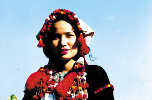 德昂族婦女穿的筒裙,式樣新穎大方,花色艷麗奪目。