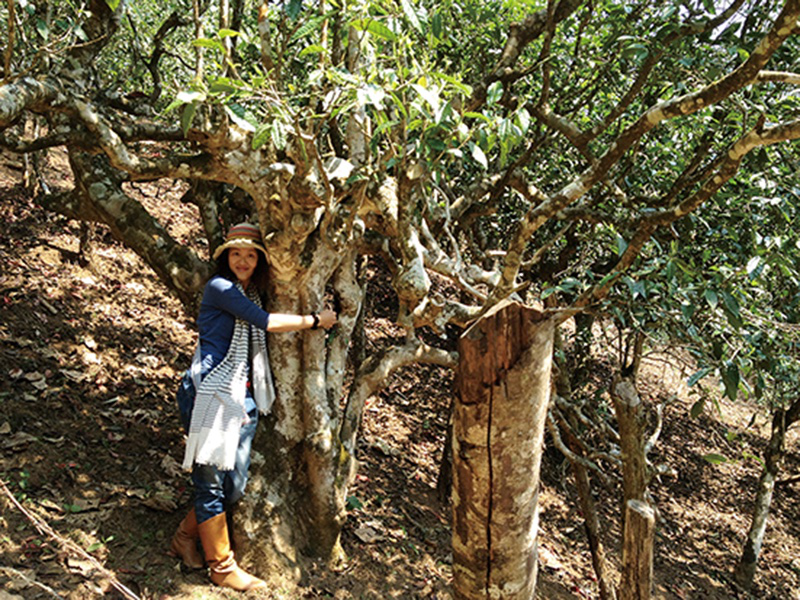 又走了一段,老茶樹開始出現(xiàn)在路邊。老茶樹主干與人的大腿等粗,萍芳家70年茶園茶樹主干也就手臂粗,長成大腿粗恐怕要好幾百年吧?茶樹上還另架著一根木頭以供上樹,我與唐郎興奮地爬上去假裝采茶,環(huán)顧四周滿滿的枝葉,原來站在古茶樹上這么威風?。?/p>
