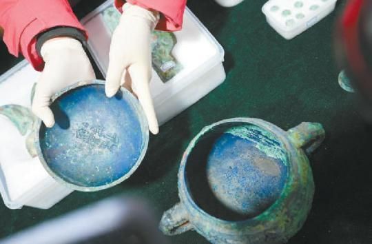 在發(fā)掘中,考古工作者還發(fā)現(xiàn)了一件趣事。M1901號(hào)墓葬新出土的銅簋與40多年前出土的圉簋紋飾相同,器蓋內(nèi)銘文為“白(伯)魚作寶尊彝”,器內(nèi)底銘文則有“王賜圉貝,用作寶尊彝”字樣。“據(jù)銘文推斷,這兩件簋的蓋、身在下葬時(shí)應(yīng)是混淆了,一錯(cuò)3000年?!蓖蹙дf,時(shí)隔40余年,兩器重聚首,也證明了(伯)魚和圉實(shí)為同一人,對(duì)于西周的名、字制度研究,增加了確鑿的證據(jù)。同時(shí),該墓葬新出土的青銅面具、獸面形銅飾、成組的銅車馬器、鏤空有銎銅戈,紋飾精美、細(xì)節(jié)豐富,均為首次發(fā)現(xiàn)。M1903號(hào)墓葬出土了多件漆器,包括三角紋簋、豆等,“漆器的發(fā)現(xiàn),彌補(bǔ)了上世紀(jì)現(xiàn)場(chǎng)文物保護(hù)技術(shù)有限的遺憾,對(duì)于墓葬隨葬器用制度的研究具有重要意義?!?/p>