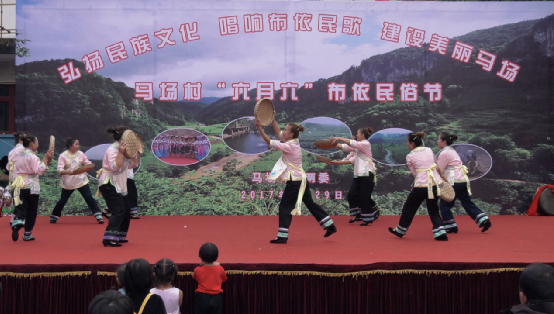 祭祀完成后,當(dāng)?shù)氐哪信仙俅┲约旱拿褡宸?,興高采烈地為客人表演極具民族特色的歌舞。連周邊的苗族同胞也來(lái)為布依族節(jié)日慶賀,登臺(tái)表演共敘友誼。一些村民們自發(fā)性地登臺(tái)參與演出,雖然質(zhì)樸卻不失誠(chéng)意。