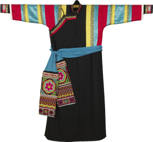 花袖衫上的各種色彩都有象征意義,其中黑色表示土地,藍(lán)色表示天空,紅色表示太陽,綠色象征森林和草原,黃色象征豐收,白色象征乳汁和純潔。