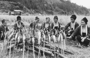廣西三江侗族自治縣舉辦高山稻魚文化節(jié),當(dāng)?shù)氐某檀?、良口、富祿等鄉(xiāng)鎮(zhèn)以稻田抓魚、烤魚、風(fēng)情表演等活動(dòng),吸引游客前往體驗(yàn)原汁原味的侗鄉(xiāng)稻魚文化,樂享金秋豐收喜悅。近年來,該縣傾力推進(jìn)“種稻養(yǎng)魚”特色產(chǎn)業(yè),將傳統(tǒng)優(yōu)勢轉(zhuǎn)化為資源優(yōu)勢,并大力發(fā)展生態(tài)鄉(xiāng)村游,推銷高山生態(tài)健康食材,使群眾脫貧增收。圖為當(dāng)?shù)厣贁?shù)民族婦女在該縣富祿苗族鄉(xiāng)富祿村稻田內(nèi)烤魚。