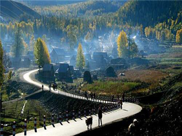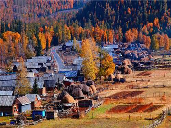 白哈巴是個(gè)原始自然生態(tài)與古老傳統(tǒng)文化共融的村落,一切都還保存著幾百年來(lái)固有的原始風(fēng)貌,以圖瓦人為主,位于阿爾泰山山脈的山谷平地上,與哈薩克斯坦的大山遙遙相望,阿爾泰山上密密麻麻的金黃金黃的松樹(shù)林一直延伸到白哈巴村里,村民住的木屋和圈養(yǎng)牲畜的柵欄錯(cuò)落有致地散布在松林和樺林之中,安寧、祥和。