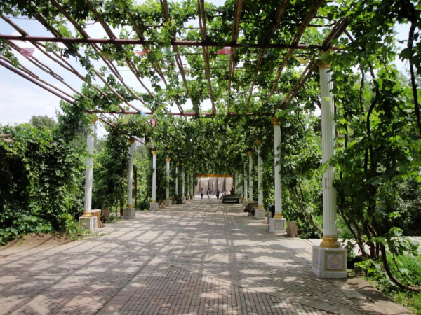 葡萄村附近還有一所達(dá)瓦孜民俗風(fēng)情園。它東倚陡峭的火焰山斷崖,西跨壯麗的天山飛瀑。園內(nèi),坎兒井溪流環(huán)繞,白楊樹綠蔭遮日;葡萄藤蔓層層疊疊,成熟的果實(shí)如珍珠翡翠。進(jìn)入達(dá)瓦孜景區(qū),首先映入我們眼簾吸引我們的一座座、一棟棟充滿濃郁伊斯蘭教色彩的建筑,仿佛使人進(jìn)入一個(gè)神秘的國(guó)度。沿火焰山崖壁拾階而上,是達(dá)瓦孜民俗風(fēng)情園的觀景臺(tái),憑欄遠(yuǎn)望,葡萄溝方圓百里獨(dú)特迷人的西域風(fēng)光盡收眼底瞧。