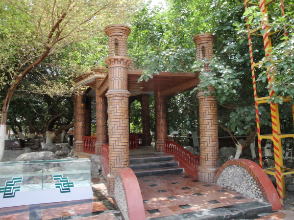 村內(nèi)還有一座王洛賓音樂(lè)藝術(shù)館。王洛賓藝術(shù)館是由王洛賓藝術(shù)研究傳播機(jī)構(gòu)和新疆大西部旅游開發(fā)公司合作于2000年6月建成的一座具有濃郁新疆民族風(fēng)格的建筑,依山傍水坐落在葡萄溝的綠樹叢中它有著獨(dú)特的文化內(nèi)涵,真實(shí)而又全面地展示王洛賓藝術(shù)生涯。館內(nèi)陳列著百余幅歷史圖片和大量珍貴的文物資料,翔實(shí)的向游客介紹王洛賓先生六十余年音樂(lè)成就和鮮為人知的故事,現(xiàn)已成為吐魯番地區(qū)的知名旅游景點(diǎn)之一。