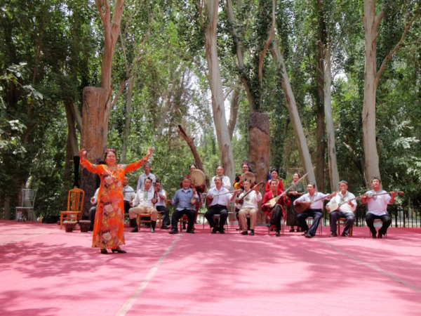 這里還有特色的維吾爾族美食,如:馕、烤包子、抓飯、拌面、大盤雞、烤肉、椒麻雞、拉條子、馕坑肉、胡辣羊蹄等等,令人垂涎欲滴。以及維吾爾族歌舞表演,如:木卡姆、麥西來(lái)普、那孜庫(kù)姆等。游客來(lái)此可坐在維吾爾族特色民居里,一邊吃著美食一邊欣賞歌舞,切身感受維吾爾族的民俗風(fēng)情與文化。