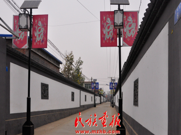 改造后的福山營(yíng)村街道,體現(xiàn)滿族文化的八面旗幟隨處可見