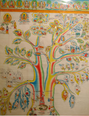 在上述80幅唐卡中:屬于藏醫(yī)學基礎理論方面,樹喻學說見于唐卡(2)—(4)。唐卡(18)按照人體“龍”、“赤巴”、“培根”的“三大因素”學,提出了它們是維持生命的物質基礎,人體平衡失調均可致病。