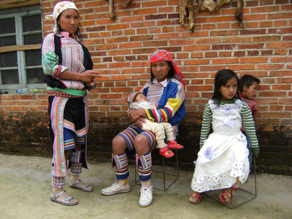 相對(duì)來說,男子服飾除包黑色包頭上沒有什么特別。但喜歡紋身,其中多數(shù)在胸脯刺牛頭,手腕刺鳥,腿上刺山林圖案。外出,??婊ú即?,佩戴長(zhǎng)刀或火槍,給人以雄壯威武之感。