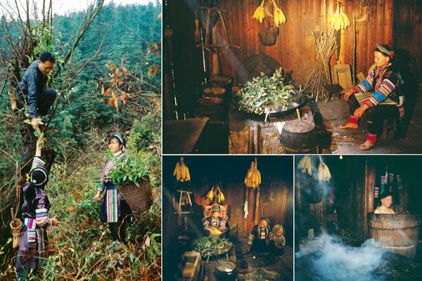 各地藥浴習俗不同,或每日洗浴,或擇吉日洗浴。由每戶最年長的男性上山采來追風藤、半邊楓、九龍盤、血藤等中草藥,洗凈,捆成把或切碎放入大鐵鍋中用水煮沸,待煮出藥汁后,撈去藥渣,把煮好的藥水放入專門藥浴的大桶——“龐桶”中。浴者赤身入桶,在保持適宜溫度(一般為38度左右)的藥液中浸泡20-30分鐘。鍋中有煮好的備用藥水,可保證每位藥浴者浴時的溫度相同。在藥浴中,通過浸泡,讓藥汁慢慢地滲入人體的毛細血管、遍及全身,達到以浴治病的目的?,幾逵盟幩瓷?,不分男女老幼,全家皆洗,一家人輪流洗,水臟了就換,冷了再加熱。瑤族將傳統(tǒng)禮儀規(guī)范滲透到藥浴治療當中,規(guī)矩是:先客后主,先小后大,先老后少,先男后女。