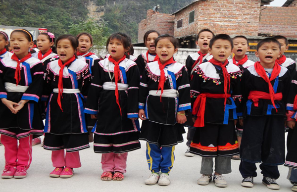 瑤族兒童唱瑤歌 (攝影:王鐵志)