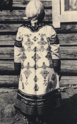 早期的赫哲人制作的魚皮服飾很簡單,只是遮蔽、取暖和御寒,沒有造型設(shè)計(jì)。隨著時(shí)代的變遷、手工技藝水平的不斷提高,赫哲人對服飾美的追求也就越來越多了。對魚皮服裝不斷修飾。魚皮衣服上的裝飾大體有三種形式:一是緄邊或鑲邊;二是緝縫裝飾圖案或紋樣;三是綴飾掛件。一般在緄邊或鑲邊時(shí)要選用有顏色的魚皮。將染有紅黃藍(lán)紫白黑等不同顏色的魚皮鑲嵌或緄縫于不同的衣物上。還用不同顏色的魚皮剪成各種云紋、鳥獸、如意圖案縫在衣物的背部、領(lǐng)口、袖口或衣襟上。將貝殼、銅鈴、獸骨、古錢及其他金屬等裝飾物,縫在衣物的下擺或腰際。