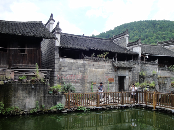 古村建筑整體布局按梅花狀排列,巷道與封閉式庭院呈“八卦陣式”將古村分成了五個(gè)自然村。道路縱橫交錯(cuò),宛如網(wǎng)狀,進(jìn)入村中,如入迷宮。村中各類公共建筑,如祠堂學(xué)館、街市巷道、寺廟、排水系統(tǒng)以及古今古樹、津渡涼亭都保存相對(duì)完整。