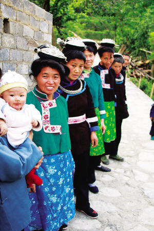 晚餐時,歌聲又起。起初是一個一個地唱敬酒歌,接著我們的身后便站滿了一圈身著苗族服裝的婦女,由一人領(lǐng)唱,大伙應(yīng)和。來賓們也興奮起來,你唱我回,各地苗歌、侗歌、水歌齊上陣,聽不懂的就相互翻譯。細(xì)聽歌詞,便發(fā)現(xiàn)主人們是精心準(zhǔn)備的:他們唱的歌中有敬酒歌、生產(chǎn)勞動歌,也有接親嫁女歌,還有遷徙古歌。一位80多歲的老人唱到嫁女歌和遷徙古歌時,賓主都安靜了下來,仔細(xì)傾聽那位老人歌聲中的沉郁和蒼涼。我注意到老人家進(jìn)入了角色,眼眶里滾動著淚花。
