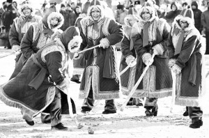 其實,曲棍球在中國的歷史也是十分悠久的。我國有關(guān)曲棍球運動的記載,早在唐代就有了,那時曲棍球叫“步打球”。唐朝詩人王建曾賦詩描寫宮女們在寒食節(jié)這天,在宮殿前給皇帝表演打曲棍球的情景:“殿前鋪設兩天樓,寒食宮女步打球。一半走來爭跪拜,上棚先謝得頭籌?!痹诒彼?,曲棍球有了另外一個名字——“步擊”。到了遼代,曲棍球運動開始在契丹人中盛行,《遼史》中稱之為“擊鞠”。遼代以后,曲棍球運動在我國其他民族中逐漸消失,而作為契丹人后裔的達斡爾族,卻始終保持著這一古老的傳統(tǒng)體育活動。