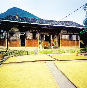 聚居石阡的仡佬族民居為不封閉的院落式,即三合院式。主房是建在高臺基上的瓦房,兩側(cè)廂房是干欄式吊腳樓,樓下為畜圈、存燒柴處,樓上住人,放置糧食和雜物,所形成的院落都鋪著石板,以利秋收時作曬場。