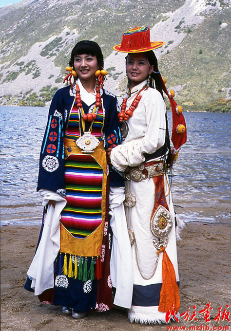 縱觀中國少數(shù)民族的服飾色彩,沒有一個(gè)民族的服飾色彩是單一的,有的民族可能比較含蓄,他們只是在裙擺綴上一條細(xì)細(xì)的花邊,在衣領(lǐng)上繡一排小小的花朵, 或是把彩虹纏上衣袖;有的民族可能比較奔放,他們把鮮艷的花朵大大地繡在胸前背后,或是用紅、黃、黑等大色塊來組成長裙……“赤橙黃綠青藍(lán)紫,誰持彩練當(dāng)空舞”,在中華大地上舞動赤橙黃綠青藍(lán)紫的是55個(gè)少數(shù)民族的兄弟姐妹。