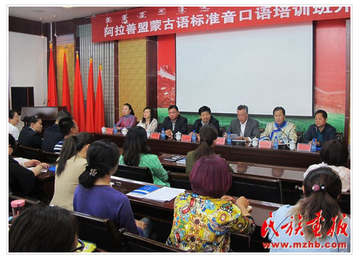 2016年,阿拉善盟舉辦了蒙古語(yǔ)標(biāo)準(zhǔn)音口語(yǔ)培訓(xùn)班(民族畫報(bào)資料)