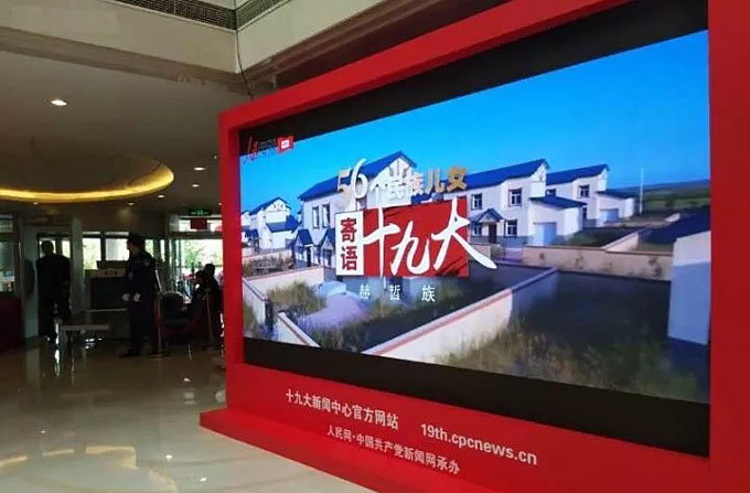 大型系列微視頻“56個(gè)民族兒女寄語十九大”視頻十九大期間在梅地亞新聞中心大屏展示并滾動播出(人民網(wǎng))