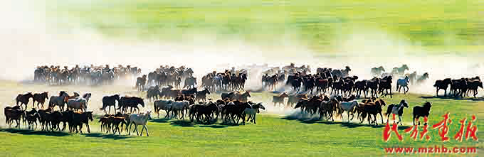 內(nèi)蒙古自治區(qū)呼倫貝爾市鄂溫克族自治旗是內(nèi)蒙古東部的綠色凈土,這塊未被污染的寶地上萬馬奔騰(鄂溫克族自治旗攝影協(xié)會 供圖)