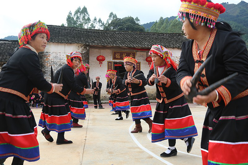 鐘山瑤族的門唻歌、蝴蝶歌、羊角長鼓舞,正如三顆璀璨的明珠閃耀在大瑤山中。“門唻瑤歌唱新事,羊角長鼓舞長風(fēng);歌盡黨的好政策,我把幸福藏心中?!爆F(xiàn)在,瑤族同胞憑借黨的惠民政策,用勤勞的雙手建設(shè)自己美好的家園。閑暇之余打起油茶、唱響門唻歌蝴蝶歌、跳起羊角長鼓舞,用最美的歌聲、最美的舞蹈表達(dá)對祖國、對黨及對家鄉(xiāng)的無比熱愛之情。