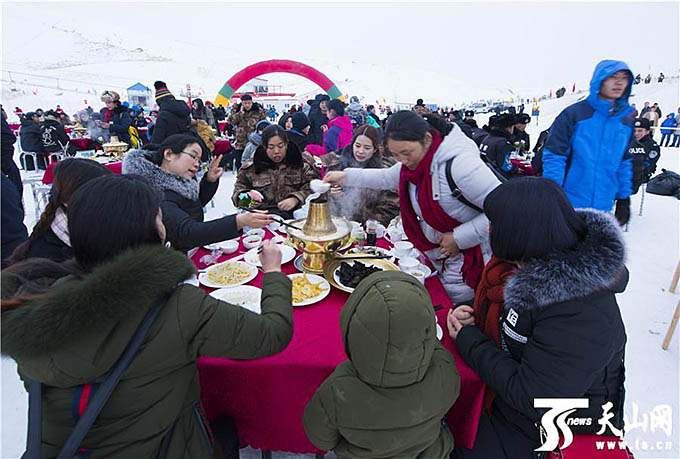 此次冰雪旅游文化節(jié)持續(xù)兩日,內(nèi)容豐富多樣,除了歌舞表演外,還將各類民俗文化與冰雪主題相融合,將伊犁各族群眾的特色生活方式融入冰雪主題活動中。文化節(jié)設(shè)有雪地摩托車、民俗體育活動、冬宰文化展示及美食匯、千人雪上涮火鍋、冰雪篝火音樂節(jié)、雪山煙花宴、雪夜宿天山、那拉提冬雪攝影節(jié)等板塊,各個板塊交互式進(jìn)行,“體驗(yàn)”和“互動”貫穿了整個活動過程,拓展了游客對雪和冬季的認(rèn)知。