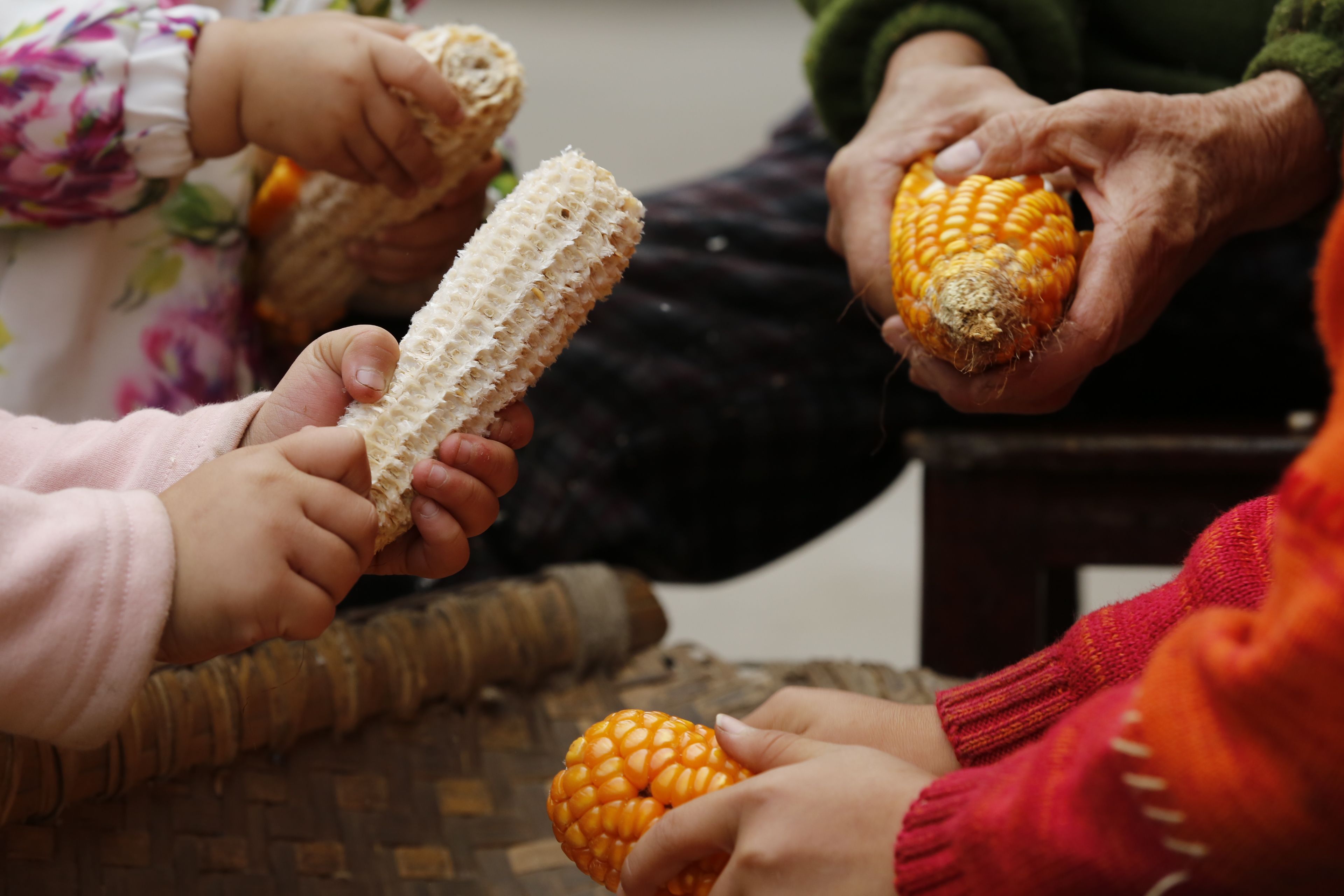 苗族老年人與兒童剝玉米2