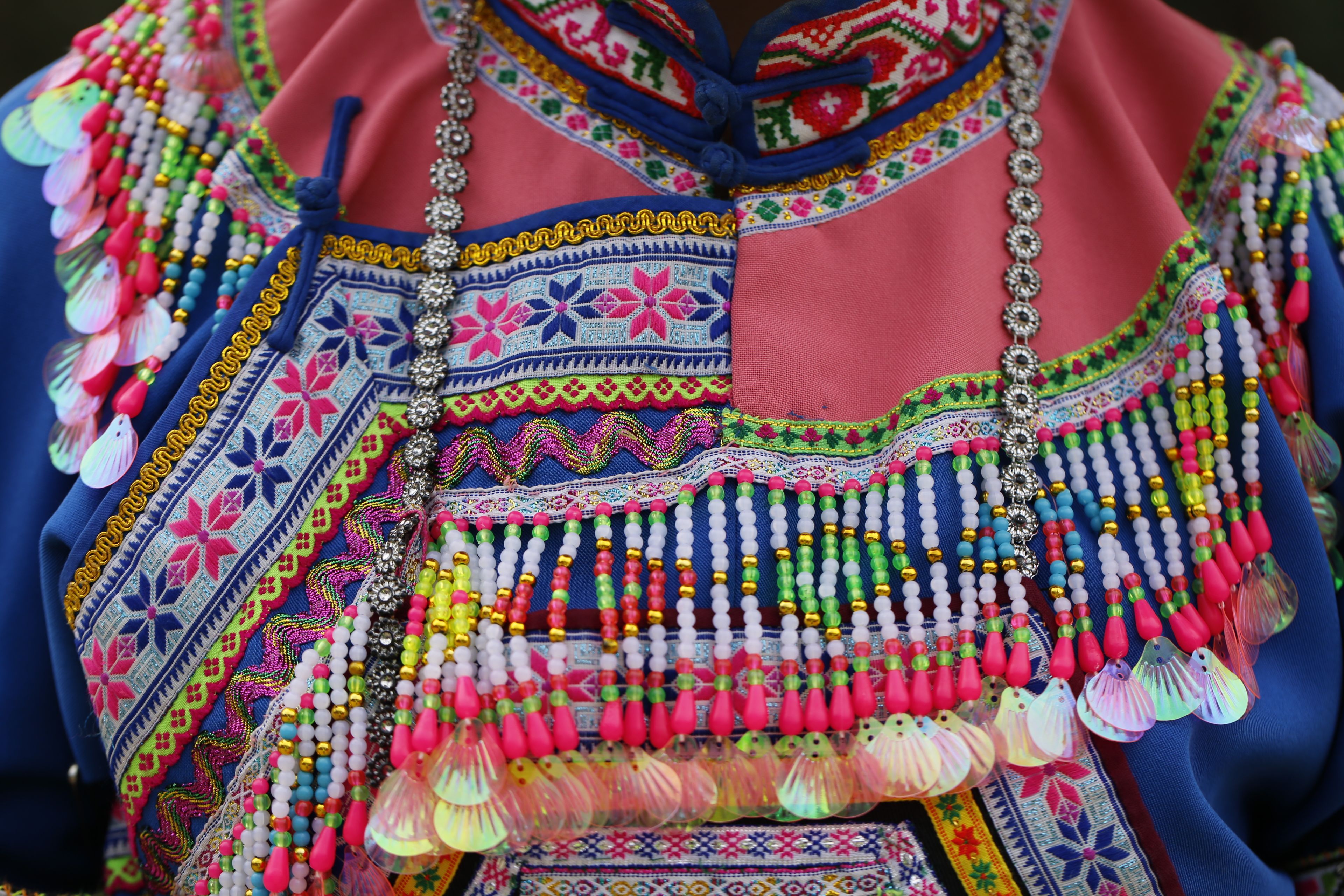 苗族女子對襟刺繡上衣-繡花和裝飾