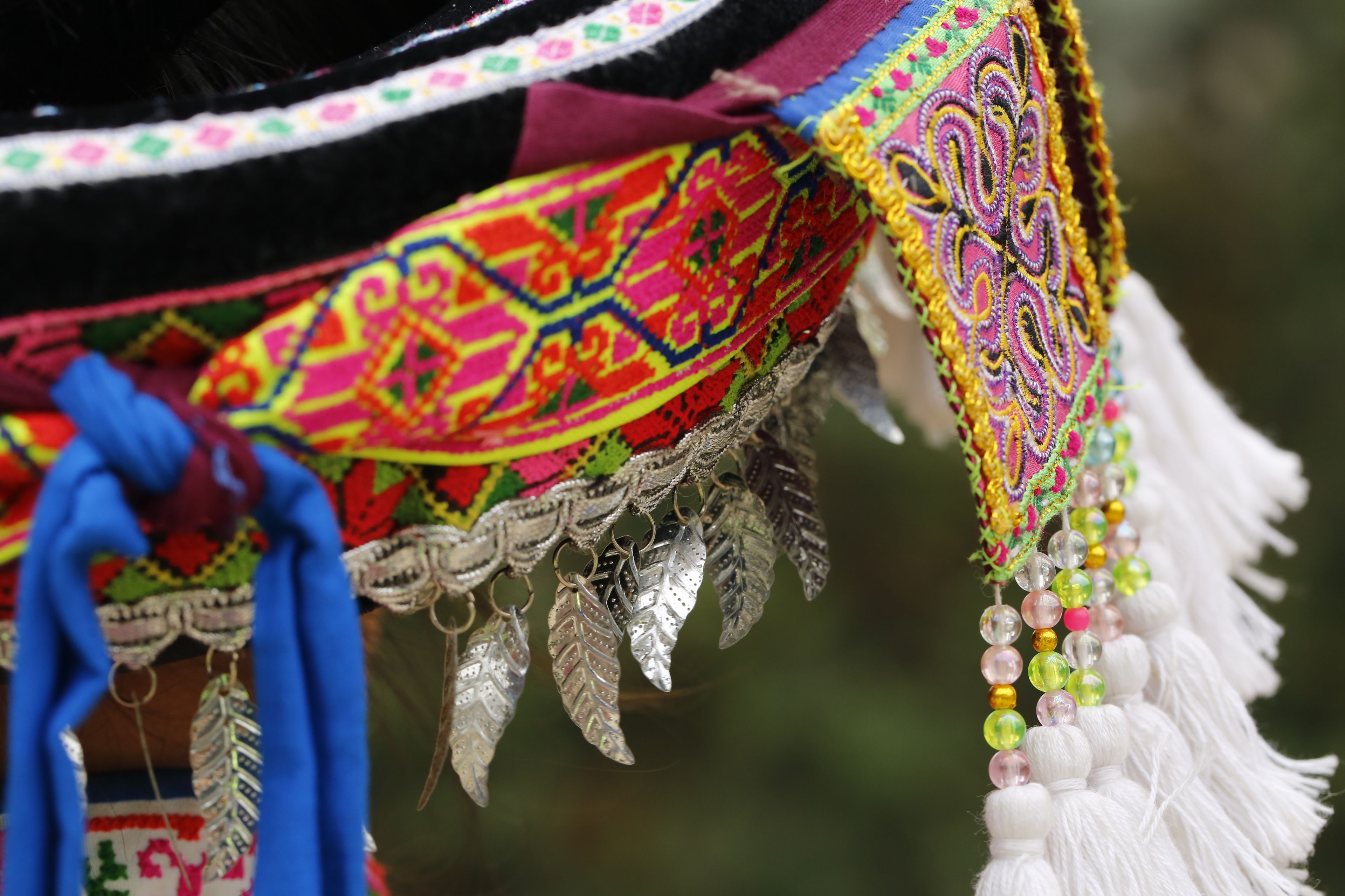 苗族女子服飾花帽-側(cè)面繡花及裝飾1