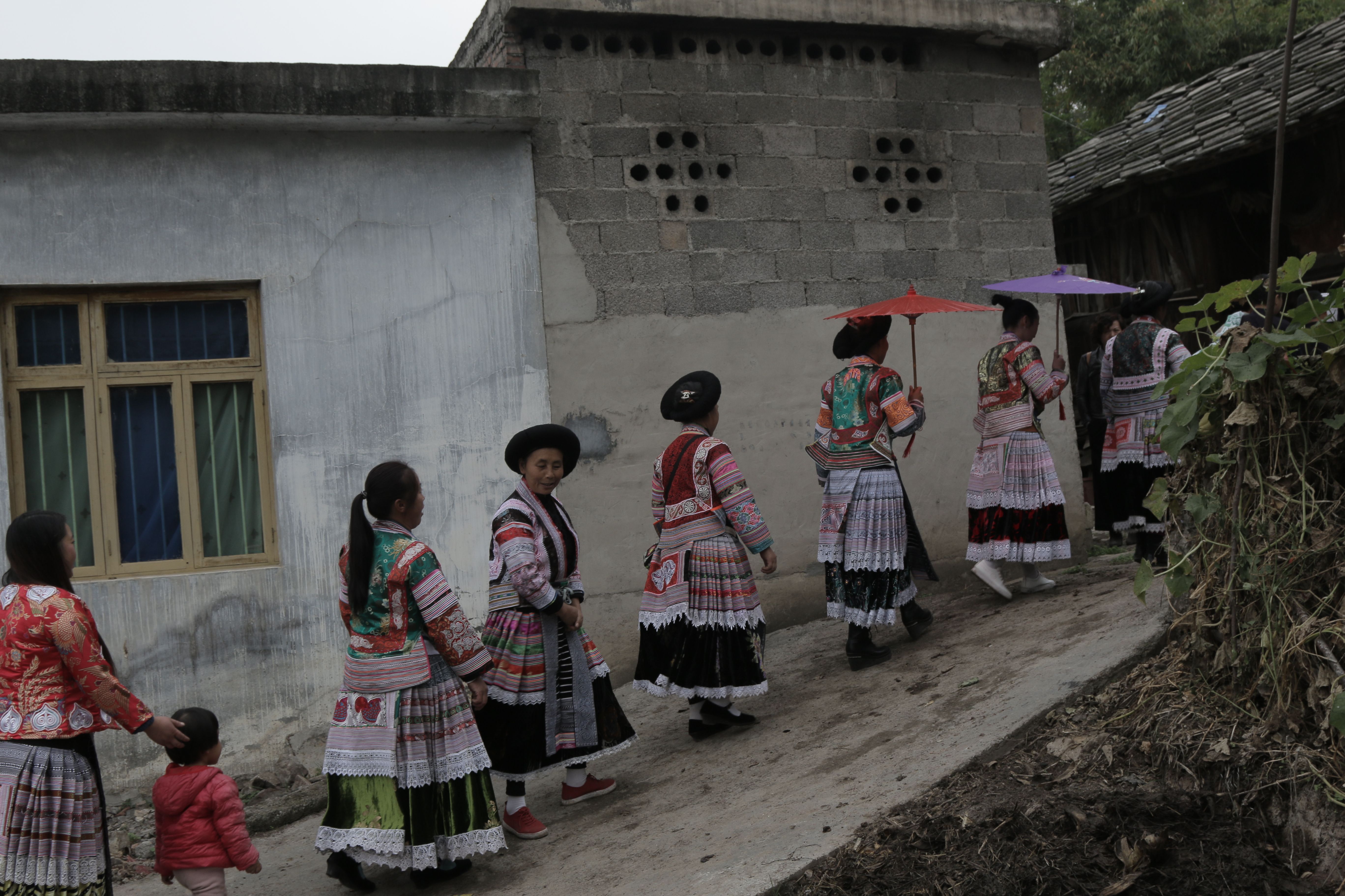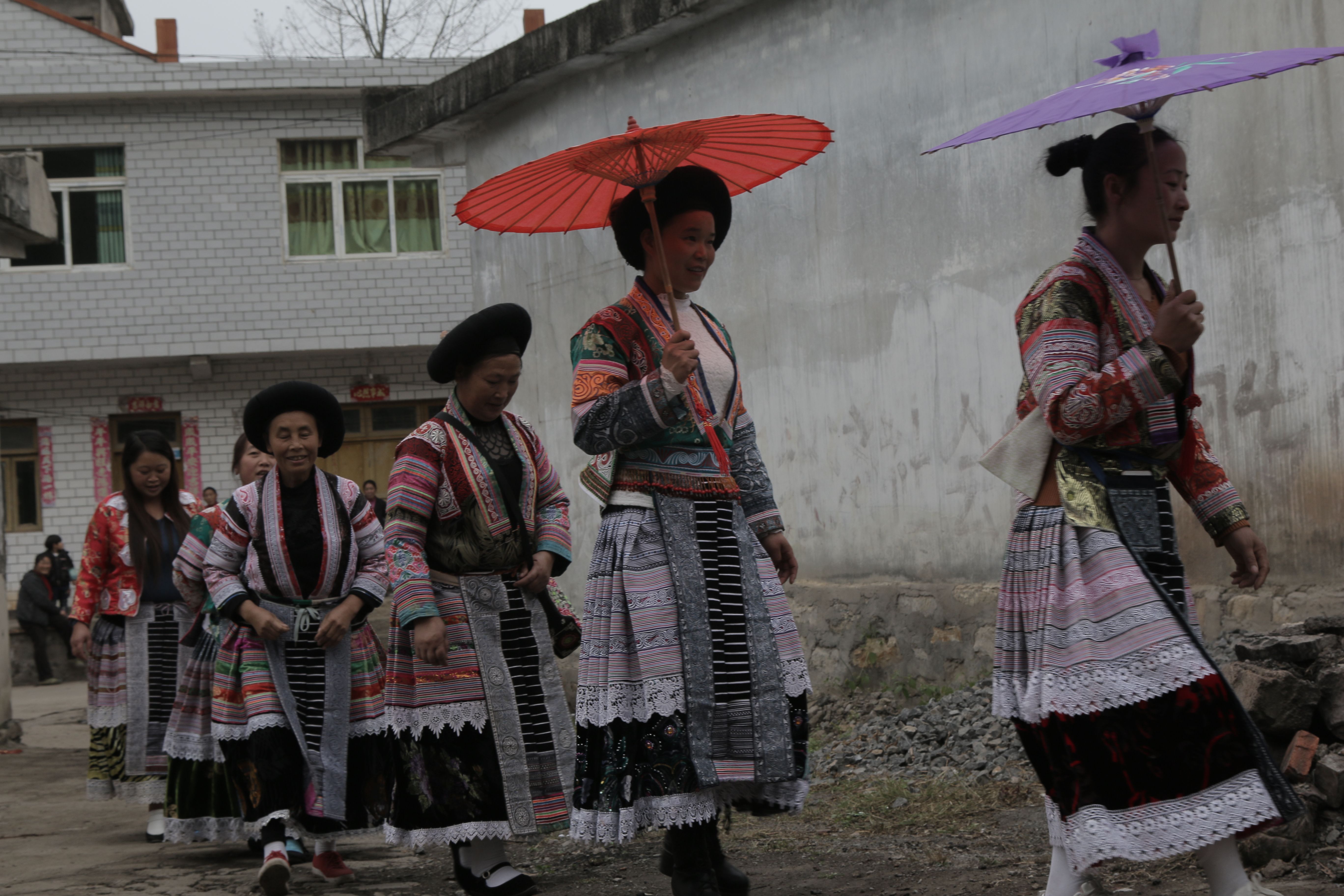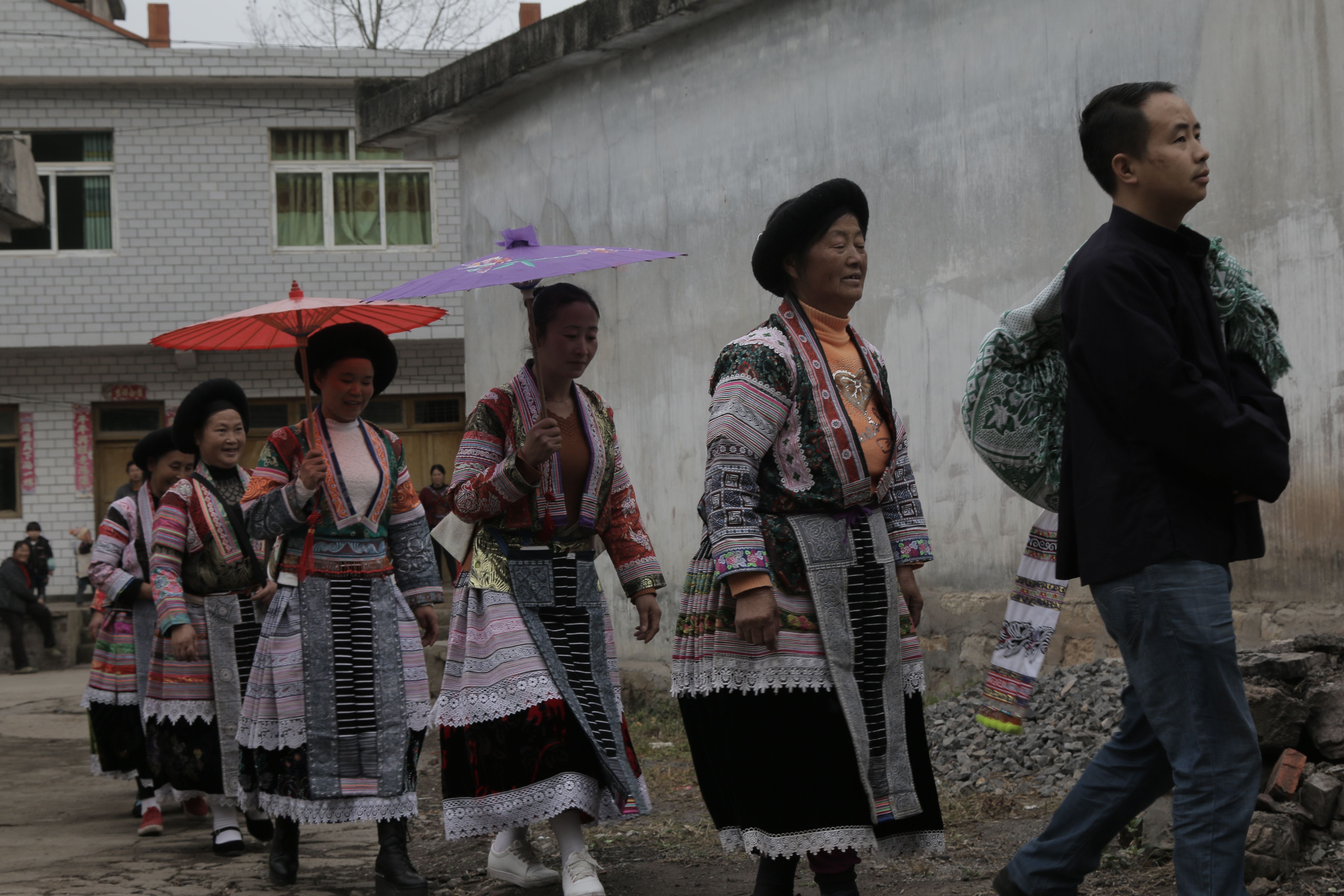 圖片說明:貴州貴陽苗族婚嫁接親隊伍
