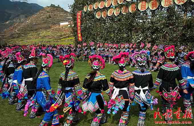 “高山頂上茶花開,阿哥阿妹跳腳來,跳腳跳到黃昏冒,跳腳跳到太陽照……”這是彝族傳統(tǒng)賽裝節(jié)的真實(shí)寫照。在云南省楚雄彝族自治州永仁縣直苴村,每年正月十五是當(dāng)?shù)匾妥迦罕姷摹皶r(shí)裝節(jié)”,山里的彝家女子都要將自己精心繡制的民族服裝展示出來。