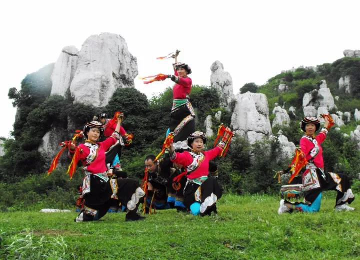 “鈴鐺舞”主要流傳在烏蒙山區(qū)的彝族聚居區(qū)。彝語稱“懇合唄”。“懇合”,指祭祀禮儀中唱經(jīng)文的歌,“唄”即跳的意思,又稱“跳腳”、“抄子舞”。合起來就是通過舞蹈表演的形式加上歌師的訴唱來祭奠死者的意思,是彝族先民在祭祀教化活動時(shí)按倫理輩分和長次舉行高歌創(chuàng)業(yè)公德的騎馬戰(zhàn)狀舞蹈。