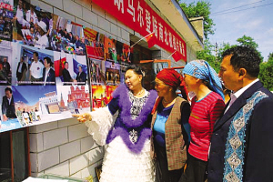 各族群眾觀看胡斯馬義·沙胡馬爾登陸南北極圖片展覽。