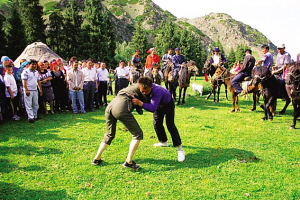 座談會結(jié)束后,大家又來到新地溝草原,舉行哈薩克族民間傳統(tǒng)體育活動,哈薩克族群眾紛紛參加姑娘追、摔跤、叼羊、賽馬等活動。一時(shí)間人聲鼎沸,歡歌笑語,草原上呈現(xiàn)出一片歡悅的景象。
