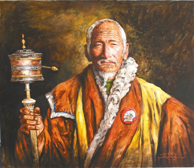 “我曾遇到過民主改革后重獲新生的翻身農(nóng)奴,他們的經(jīng)歷非??部馈τ谒麄儊碚f,對給予他們自由的毛主席有著很深的感情。老一輩翻身農(nóng)奴為表達(dá)感激之情,便有了佩戴毛主席像章每天做祈禱的人?!彼髀峄貞浿?dāng)初繪畫《永遠(yuǎn)的懷念》這幅作品時(shí)的情景。
