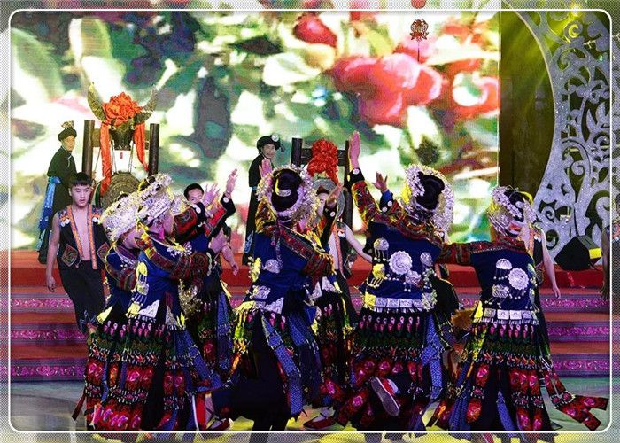 中國(guó)苗族網(wǎng)訊 2019年1月19日,由貴州省社科聯(lián)、貴州民族大學(xué)指導(dǎo),貴州省苗學(xué)會(huì)主辦,貴陽(yáng)市苗學(xué)會(huì)、六盤(pán)水市苗學(xué)會(huì)、安順市苗學(xué)會(huì)、畢節(jié)市苗學(xué)會(huì)、銅仁市苗學(xué)會(huì)、黔西南州苗學(xué)會(huì)、黔東南州苗學(xué)會(huì)、黔南州苗學(xué)會(huì)、貴安新區(qū)苗學(xué)會(huì)、多彩貴州城建設(shè)經(jīng)營(yíng)有限公司共同協(xié)辦的“迎新春-蝶韻楓彩鼓聲來(lái)”2019春節(jié)聯(lián)歡晚會(huì),在貴州省貴陽(yáng)市“多彩貴州城”展示中心隆重舉辦。貴州省9個(gè)州市及貴安新區(qū)苗族、布依族、侗族、土家族、彝族、仡佬族、水族、回族、白族、瑤族、壯族、毛南族、蒙古族、仫佬族、羌族、滿(mǎn)族等17個(gè)少數(shù)民族載歌載舞歌盛世,歡天喜地迎新春。 應(yīng)邀出席春晚的領(lǐng)導(dǎo)嘉賓有貴州省人大常委會(huì)原副主任、省苗學(xué)會(huì)老會(huì)長(zhǎng)楊光林,以及貴州省人大常委會(huì),貴州省社科聯(lián),貴州省民政廳,貴州省政協(xié),貴州民大,貴州省政協(xié),貴州省文化和旅游廳,貴州省總工會(huì),貴州省文聯(lián)、貴州省人大、省委宣傳部、省民政廳,民宗委,社科聯(lián),貴州省八大民族學(xué)會(huì)的相關(guān)領(lǐng)導(dǎo)等應(yīng)邀出席并觀看演出。 春晚得到了貴州省委宣傳部領(lǐng)導(dǎo)關(guān)心,省委常委、省委宣傳部慕德貴部長(zhǎng)對(duì)晚會(huì)專(zhuān)門(mén)作出重要批示,要求把春晚打造成一臺(tái)“思想性、藝術(shù)性、觀賞性統(tǒng)一的文藝晚會(huì),豐富春節(jié)期間群眾性精神文化生活,營(yíng)造歡樂(lè)、喜慶、團(tuán)結(jié)、祥和的節(jié)日氛圍”。 晚會(huì)緊扣“同心共筑中國(guó)夢(mèng),中華民族一家親”主題,圍繞共同團(tuán)結(jié)奮斗、共同繁榮發(fā)展主題,繼承和弘揚(yáng)中華民族優(yōu)秀傳統(tǒng)文化,積極展示貴州少數(shù)民族同胞改革開(kāi)放40周年來(lái)翻天覆地的新變化,用少數(shù)民族原生態(tài)歌舞形式歌頌黨、歌頌祖國(guó)、歌頌民族大團(tuán)結(jié)。春晚節(jié)目,由貴州省各州市國(guó)家非遺保護(hù)節(jié)目、在中央春晚節(jié)目,由貴州省各州市國(guó)家非遺保護(hù)節(jié)目、在中央級(jí)、省市級(jí)比賽中獲獎(jiǎng)的各民族原生態(tài)蘆笙舞、錦雞舞、銅鼓舞、板凳舞,苗族飛歌、古歌、大歌、情歌、絕技;民族盛裝走秀;非遺文化展示等26個(gè)節(jié)目組成。 晚會(huì)由240位貴州各地苗族演員,50位苗族、布依族、侗族、仡佬族、彝族、土家族、回族等17個(gè)少數(shù)民族演員,在主持人的開(kāi)場(chǎng)白介紹中,手持燈花、衣著盛裝在鼓點(diǎn)笙曲中步入會(huì)場(chǎng)。 接著,被國(guó)內(nèi)外譽(yù)為“東方迪斯科”的黔東南州臺(tái)江《反排木鼓舞》拉開(kāi)笙鼓迎春的序幕,雷山國(guó)家級(jí)非遺節(jié)目《掌坳銅鼓舞》、《錦雞舞》,貴陽(yáng)市花溪區(qū)《花鼓舞》、貴安新區(qū)原生態(tài)蘆笙舞《花坡韻》、黔南州《鼓龍鼓虎-長(zhǎng)衫龍》、兒童舞蹈《跺月亮》、畢節(jié)市納雍縣蘆笙舞《滾山珠》、凱里原生態(tài)合唱《春之歌》、安順留守兒童合唱團(tuán)《又見(jiàn)桃花開(kāi)》、金竹樂(lè)隊(duì)蘆笙組合《酒歌》、銅仁市絕技《紙上飛仙》、黔西南州《板凳舞》等,一個(gè)個(gè)節(jié)目精彩絕倫、美輪美奐,舞出少數(shù)民族同胞“美起來(lái)、笑起來(lái)、富起來(lái)、強(qiáng)起來(lái)”的精神風(fēng)貌、音容笑貌。最后,貴州省17個(gè)世居少數(shù)民族240名演員齊唱《愛(ài)我中華》,在“五十六個(gè)民族五十六朵花,五十六個(gè)兄弟姐妹是一家”的歌聲中把整臺(tái)晚會(huì)推向高潮,拉下帷幕。 此次春晚民族文化濃厚、明星歌手薈萃、演員陣容龐 此次春晚民族文化濃厚、明星歌手薈萃、演員陣容龐大、節(jié)目精彩絕倫。這些節(jié)目,涵蓋了東部方言、中部方言和西部方言各民族支系。遍及黔東南州、黔西南州、黔南州、貴陽(yáng)市、安順市、畢節(jié)市、六盤(pán)水市、銅仁市和貴安新區(qū)。老藝術(shù)家榜香、青年歌手阿幼朵、潘興周、雷艷、楊一方、阿娜丹、歐桑、楊佳茜、楊祖桃、楊思雨、楊廷勇、吳敏成、阿蕾倩、余秋陽(yáng)、阿依三姐妹、谷阿斯組合、阿依山娃組合等20多名少數(shù)民族歌星紛紛登臺(tái)獻(xiàn)藝,演員達(dá)300余人。 貴州省人大常委會(huì)原副主任、貴州省苗學(xué)會(huì)老會(huì)長(zhǎng)楊光林說(shuō),春晚的舉辦,有利于提高民族同胞的戰(zhàn)斗力、凝聚力、感召力!春晚牢牢把握了“百姓富、生態(tài)美”兩條底線(xiàn),通過(guò)晚會(huì)形式,吹響了少數(shù)民族同胞在黨中央和貴州省委、省政府的堅(jiān)強(qiáng)領(lǐng)導(dǎo)下,致力于決戰(zhàn)脫貧攻堅(jiān),決勝同步小康、實(shí)現(xiàn)鄉(xiāng)村振興的號(hào)角。是號(hào)召大家參與國(guó)家實(shí)施的“鄉(xiāng)村振興、脫貧攻堅(jiān)”任務(wù),努力實(shí)現(xiàn)貴州人民2020年和全國(guó)人民同步實(shí)現(xiàn)小康及全國(guó)人民正在努力實(shí)現(xiàn)的“中國(guó)夢(mèng)”作出貢獻(xiàn)的動(dòng)員令! 晚會(huì)當(dāng)天,春